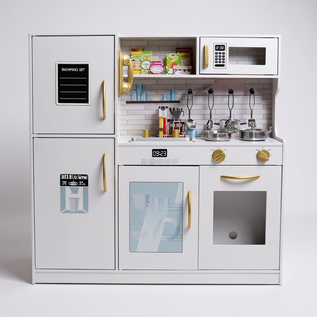 Oduševite svoje mališane čarobnim svijetom igre uz drvenu kuhinjicu Luna – elegantan, siguran i maštovit set koji pretvara dječiju sobu u pravi mali kulinarski kutak!