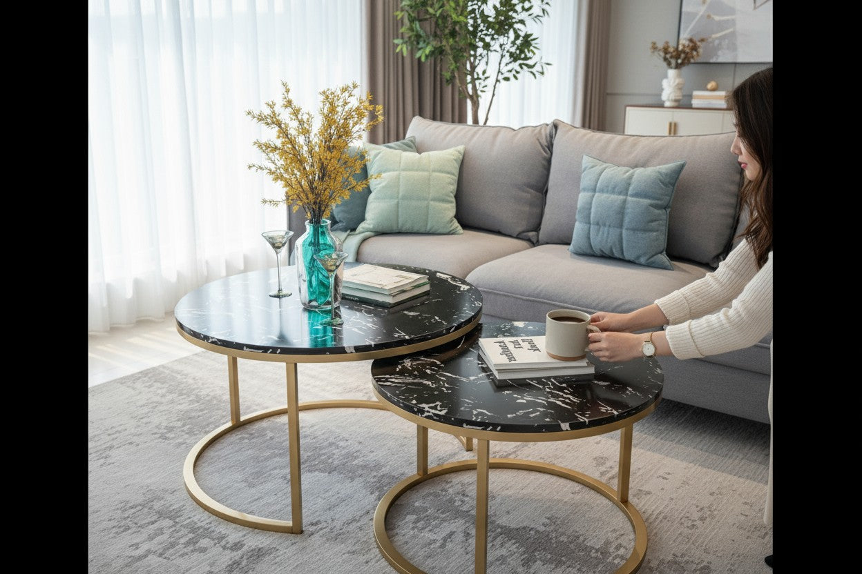 Unikatna kombinacija crnog mramora i zlatnih detalja čini Larvik sto set neizostavnim dijelom svakog modernog doma. Ovaj luksuzni duo stolića savršeno spaja eleganciju, funkcionalnost i savremeni dizajn.