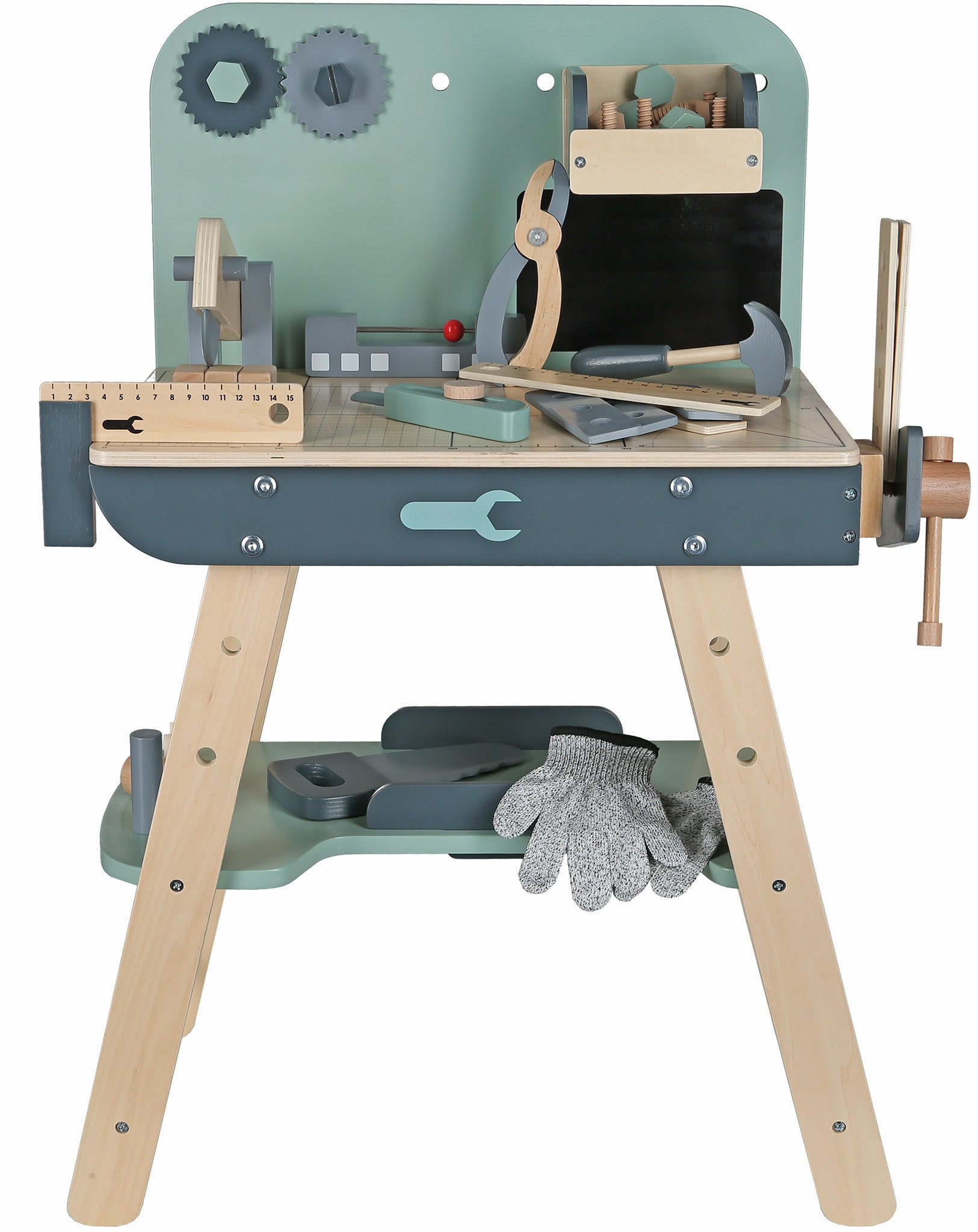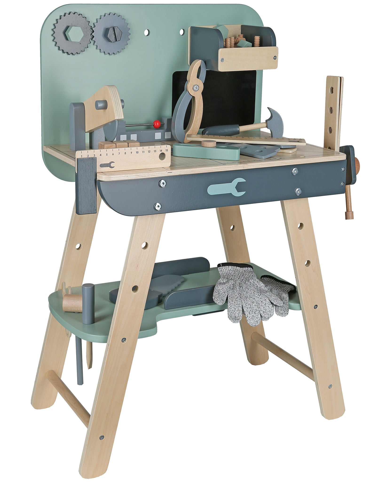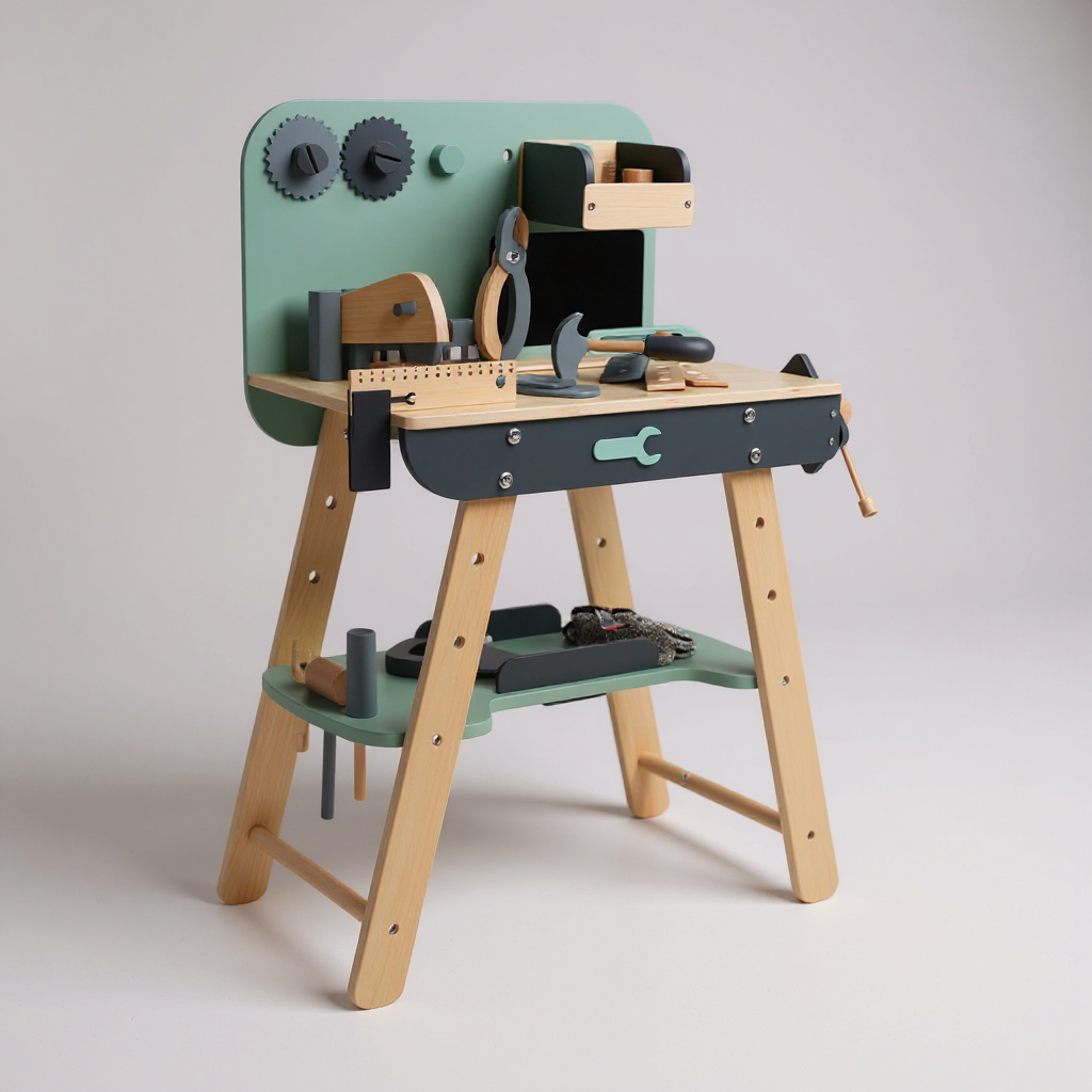 Alat sto je izrađen od kvalitetnog punog drveta, uz korištenje ekološke zaštitne boje, što osigurava sigurnu, stabilnu i dugotrajnu igru. Realistični detalji i funkcionalni elementi omogućavaju djetetu da imitira stvarne radne aktivnosti, čime se dodatno jača koncentracija i maštovita igra uloga.