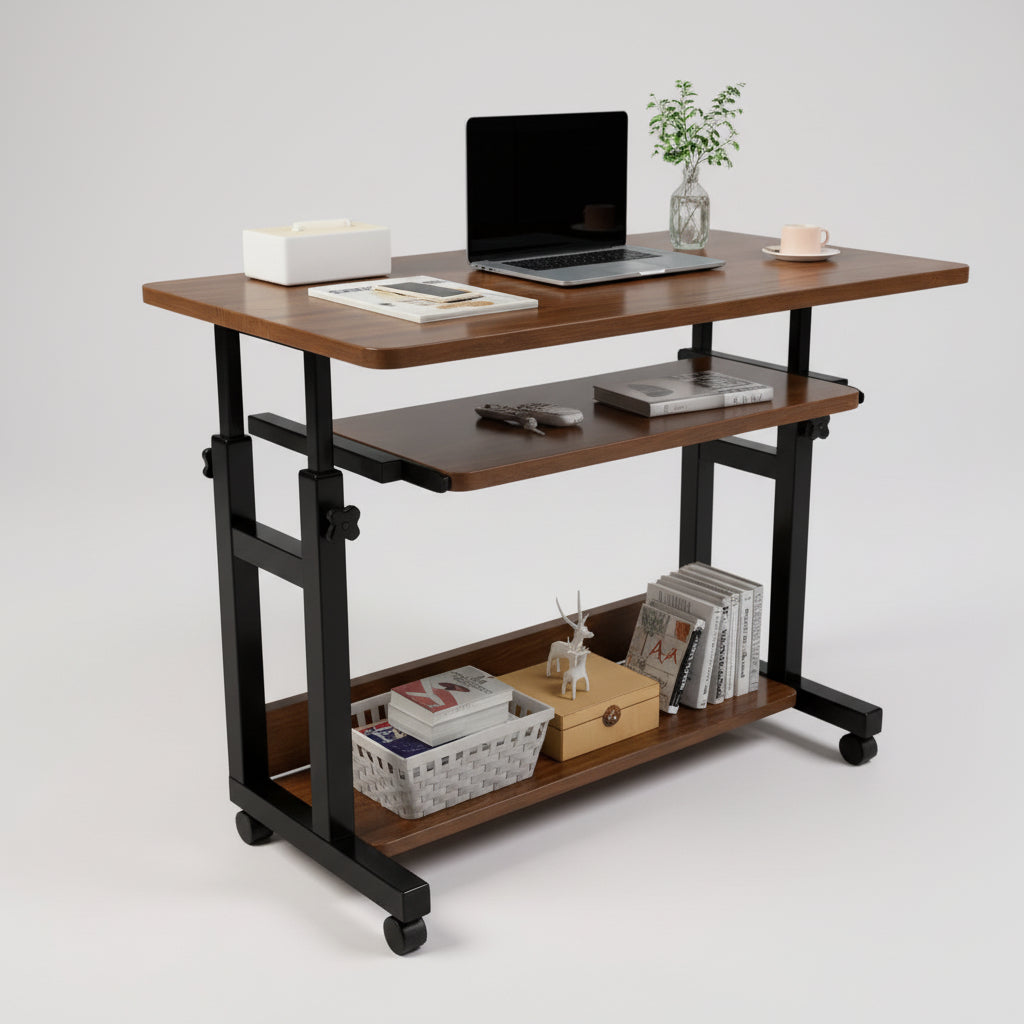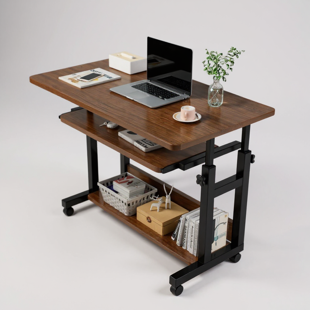 MDF ploča u orah boji donosi osjećaj topline i doma, dok čvrsta metalna konstrukcija osigurava stabilnost i dugotrajnost. Zahvaljujući podesivoj visini, Velano se lako prilagođava različitim potrebama – bilo da radite iz kreveta, sa sofe ili kao pomoćni radni sto.