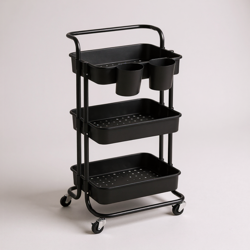 Točkići omogućavaju jednostavno pomjeranje bez napora, dok otvoreni dizajn pruža brz i lak pristup sadržaju. Gornji dio sa dodatnim držačima čini ih još funkcionalnijim za sitnice, boce ili pribor koji često koristite.